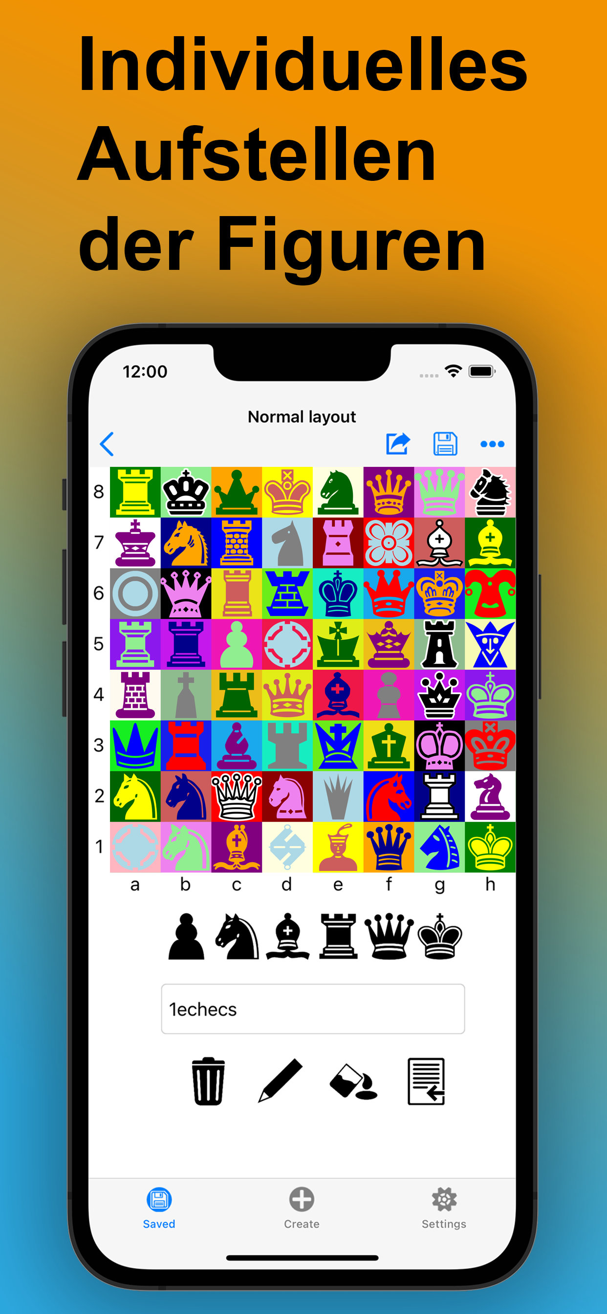 App zum Erstellen von Schachdiagrammen aller Art. Kreieren Sie mit ihrem Smartphone oder Tablet ganz einfach Schach Diagramme von unterwegs aus. Sie können über das Menü die Art der Figurenform, Feldfarben, Symbole (Pfeile ziehen, Geometrische Figuren), Beschriftungen, Texte und sogar Bilder einfügen. Alle erstellten Chesspie Diagramme werden in der Anwendung gespeichert. Sie können jederzeit die gespeicherten Dateien bearbeiten, Daten hinzufügen oder löschen.